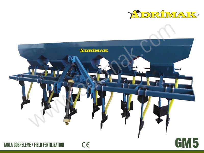 Üretimini yapmış olduğumuz 5 sralı gübreli araçapalama makinası pamuk, mısır, ayçiçeği, pancar gibi sıraya ekim yapılmış mahsüllerin toprak altı gübreleme makinasıdır.Gübreyi ayarlana bilir gübre ayakları sayesinde bitkinin zarar göremeyeceği gübreyi bitkinin en az "5cm" yakınına istenilen iş derinliğine eşit ve homojen atarak bitkinin fayda sağlamasını sağlamaktadır.