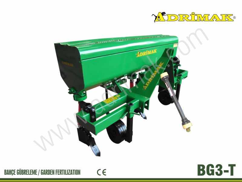 Üretimini yapmış olduğumuz "Bağ - Bahçe Toprak Altı Gübre Makinesi" bağlarda ve meyve bahçelerinde ihtiyaç duyulan taban gübrelerini toprağın altından gübrelememizi sağlar. BG 3 ürünümüz sağdan, soldan ve ortadan olmak üzere toplamda 3 sıralıdır. Ürünümüz farklı ayak yapılarına sahip olup genelde balta bacaklı modelimiz kullanılmaktadır. Ürünümüz, balta bacaklarının açtığı sıranın içine gübreyi bırakarak gübreleme işlemini gerçekleştirir. Bağ - Bahçe Toprak Altı Gübre Makinesi kullanıcıların ZAMAN, YAKIT, İŞÇİLİK masraflarını büyük oranda azaltmakla birlikte gübreyi direk olarak toprak altından kök bölgesine bıraktığı için bitkinin VERİMİNE de destek olmaktadır. BG3-T Teknik Özellikler