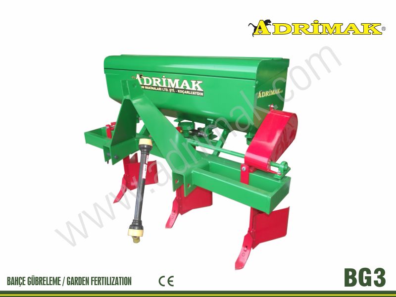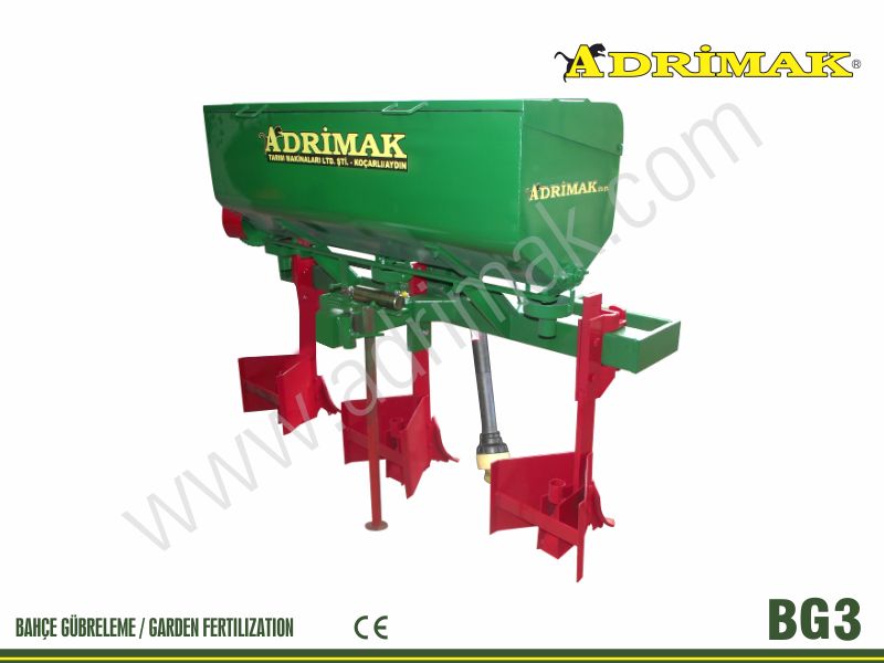 Üretimini yapmış olduğumuz "Bağ - Bahçe Toprak Altı Gübre Makinesi" bağlarda ve meyve bahçelerinde ihtiyaç duyulan taban gübrelerini toprağın altından gübrelememizi sağlar. BG 3 ürünümüz sağdan, soldan ve ortadan olmak üzere toplamda 3 sıralıdır. Ürünümüz farklı ayak yapılarına sahip olup genelde balta bacaklı modelimiz kullanılmaktadır. Ürünümüz, balta bacaklarının açtığı sıranın içine gübreyi bırakarak gübreleme işlemini gerçekleştirir. Bağ - Bahçe Toprak Altı Gübre Makinesi kullanıcıların ZAMAN, YAKIT, İŞÇİLİK masraflarını büyük oranda azaltmakla birlikte gübreyi direk olarak toprak altından kök bölgesine bıraktığı için bitkinin VERİMİNE de destek olmaktadır. BG3 Teknik Özellikler