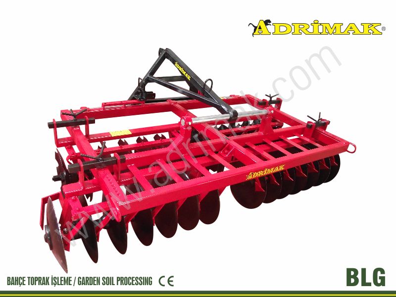 "ADRİMAK Tarım Makineleri LTD.ŞTİ. " Tarafından özel olarak üretimini yapmış olduğumuz "Asma Tip Mekanik Çapraz Ayarlı Tandem Gezerli Diskaro", pulluğun işini tamamlayarak kesekleri parçalamak, toprağı karıştırarak tarladaki bitki atıklarını ve yabancı otları kesip parçalamak, gübreyi toprağa karıştırmak gibi işlemler için kullanılmaktadır.Bahçe ziraatında ağaç dibine gezeri sayesinde rahatlıkla yanaştırılabilmektedir.Diğer iş açısı sabit dıskarolara göre iş açısı birbirinden bağımsız mekanik olarak toprak yapısına göre ayarlana bilmektedir.Buda işçilikte, mazotta,amortismanda ve zamandan kazanç sağlamaktadır.İsteğe göre hidrolik gezerli ve manüel olarak da yapılmaktadır. ![]() BLG Teknik Özellikler