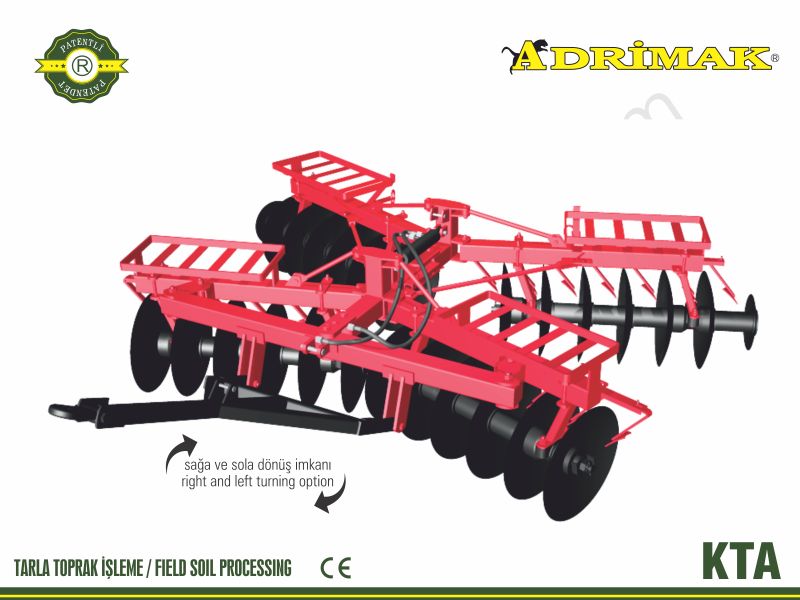 "ADRİMAK Tarım Makineleri LTD.ŞTİ", tarafından patentli olarak üretimini yapmış olduğumuz "Askılı ve Çekilir X Tipi Tandem Diskaro", pulluğun işini tamamlayarak kesekleri parçalamak, toprağı karıştırarak tohum yatağı hazırlamak, tarladaki bitki atıklarını ve yabancı otları kesip parçalamak, gübreyi toprağa karıştırmak gibi işlemler için kullanılmaktadır. İş açısı mekanik olarak değiştirilen diskarolara göre çok avantajlıdır. Tarla içerisinde dönüşlerde kısıtlama yoktur ister sağa isterse sola dönebilir. İş açısını değiştirebilen pistonu sayesinde hareket halindeyken dahi toprak yapısına göre iş açısı ayar imkânı sağlamaktadır.Ağır tip kelebek dıskaro patentli sisteminden kaynaklanan iş yapma kabiliyeti sayesinde traktöre yük iletmeden %40'lık bir iş avantaj iş ve yakıt tasarrufu sağlamaktadır.Ağır tip "kelebek" disk çapı 560mm olarak üretilmektedir.